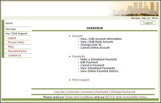(B) - You can create a New Payment, View your Payments, Edit a Payment, Cancel a Payment, or view your Payment History.