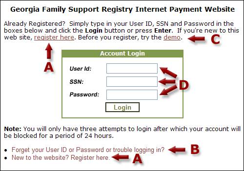 (D) - Once you're ready to Login, Type your User Id, MPI#, and Password here..