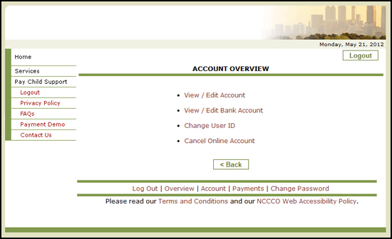 From the Account page you can Edit your Address information and Bank Account. You can also change your User ID and cancel your online account.